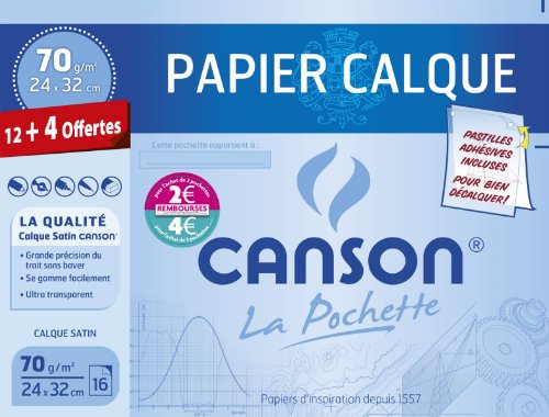 Canson 400022292 Pochette calqué 24 x 32 cm + Pastilles adhésives Blanc. Canson 400022290 Pochette calqué A4 + Pastilles adhésives Blanc.